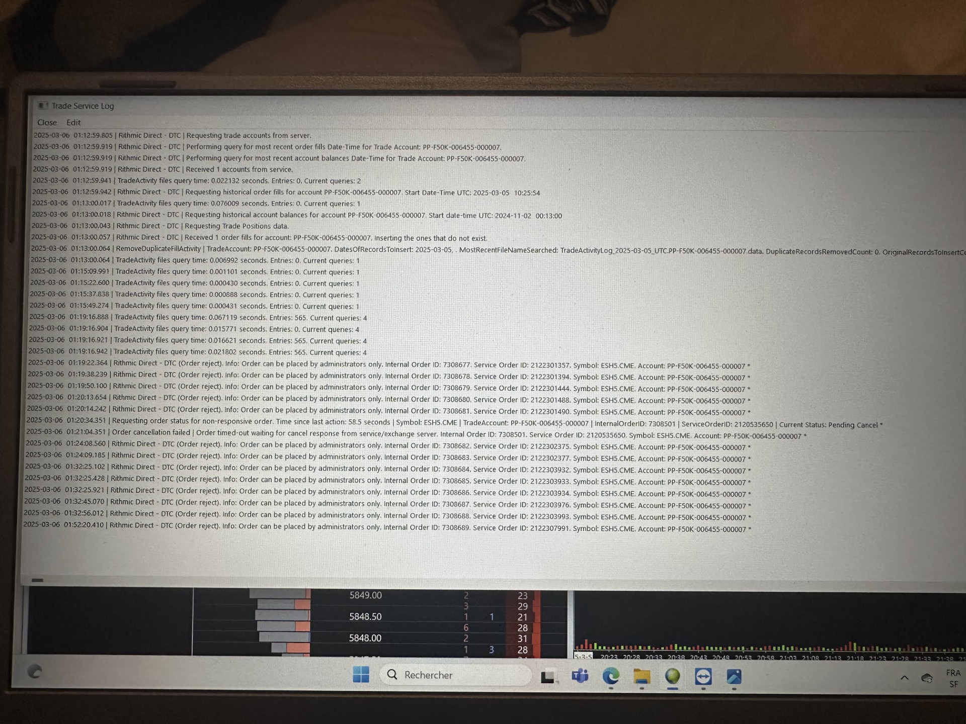 To begin with, if you are having a problem closing out a position in Sierra Chart, then you need to call your broker (or Prop Firm in this case) and have them take care of it for you. As to what occurred, the log you show in Photo 2 gives the information - Rithmic is giving you an error and stating that "Order can be placed by Administrators only". You need to ask your Prop Firm, or Rithmic what this means and why. For the most reliable, advanced, and zero cost futures order routing, use the Teton service: Sierra Chart Teton Futures Order Routing |