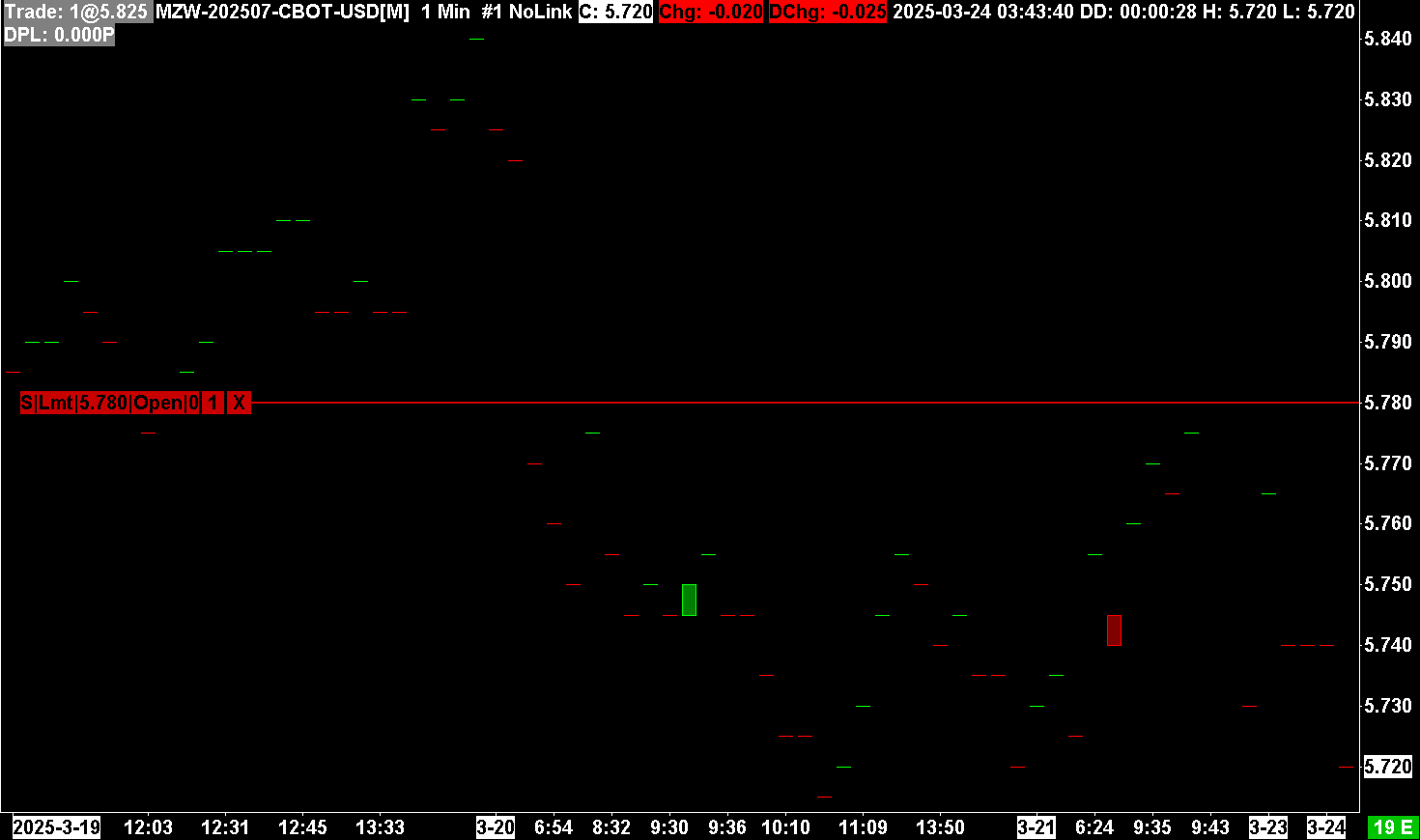 No, there is no cache. So let us understand this clearly. When you open a chart for: MZW-202505-CBOT-USD and you enable trading for the chart: Chart Trading and the Chart DOM: Entering Orders From the Chart And you submit an order, you do not see the order in the chart? Sierra Chart Support - Engineering Level Your definitive source for support. Other responses are from users. Try to keep your questions brief and to the point. Be aware of support policy: https://www.sierrachart.com/index.php?l=PostingInformation.php#GeneralInformation For the most reliable, advanced, and zero cost futures order routing, use the Teton service: Sierra Chart Teton Futures Order Routing |