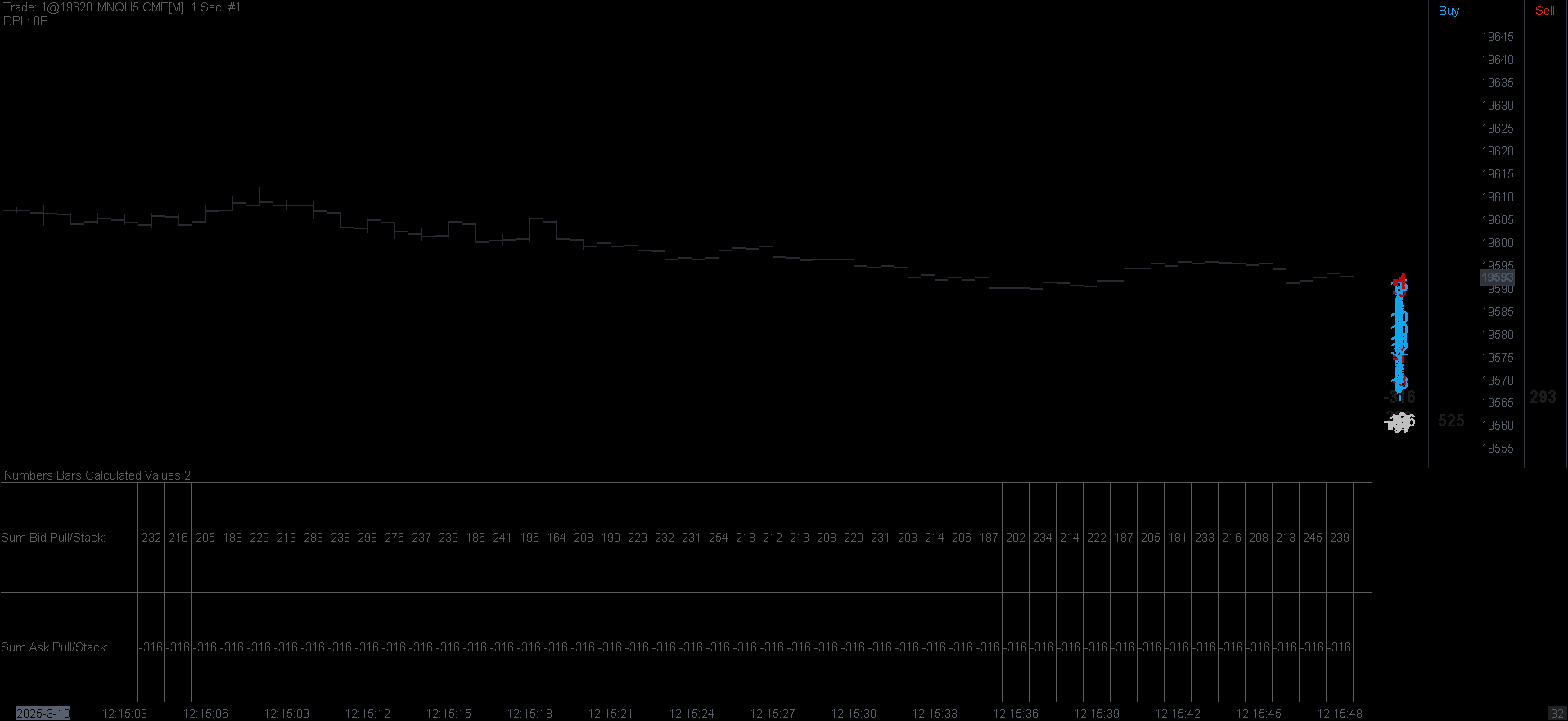 I have only one side of the pull/stack and depth (DOM or Number Bar Calculated Values or Bid Ask Depth Bars) that updates while the other side stay frozen. https://www.sierrachart.com/image.php?Image=1741623348388.png |