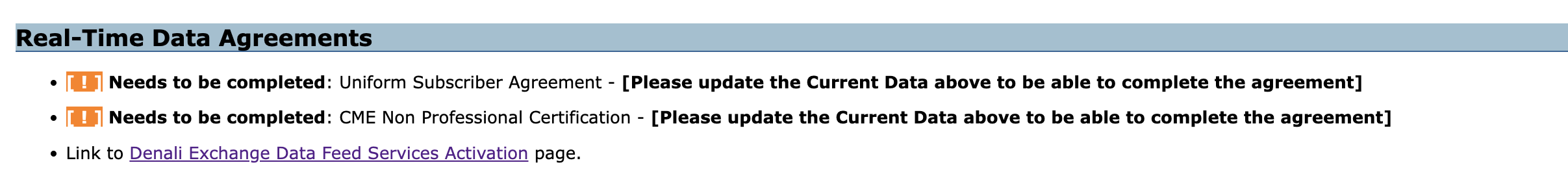 I am going absolutely nuts with this data, but I have decided to skip rithmic and stick with denali for the data. I am trying to activate the real time data agreements for CME: Activate / Deactivate Denali Exchange Data Feed Exchanges [CME / CBOT / NYMEX / COMEX] page, it tells me to update my data, specifically city and phone number, but when I enter them I get the message attached. I fill everything in correctly but then it tells me that the country is not correct and automatically puts Afghanistan. But Italy has always been there. In fact, when it tells me to complete it does not refer to the country but to the telephone number and city. Why? Maybe I need to activate the real account first? but its seems strange. I was wondering if the broker MEXEM (since I already have a small active account), a financial brokerage firm that operates in partnership with Interactive Brokers, was suitable for this purpose. Sorry for the numerous requests.