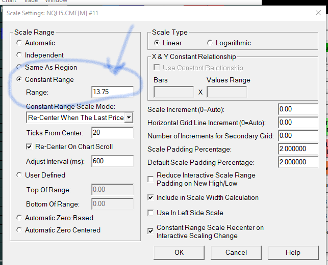 I do have the DOM also linked to many charts with different constant range scale sittings. Non of the linking settings are set to the 13.75 setting it reverts back to when changing the symbol. How can I solve the problem? The charts are all linked to the DOM. I have the DOM linked to the same L1 group. thanks |