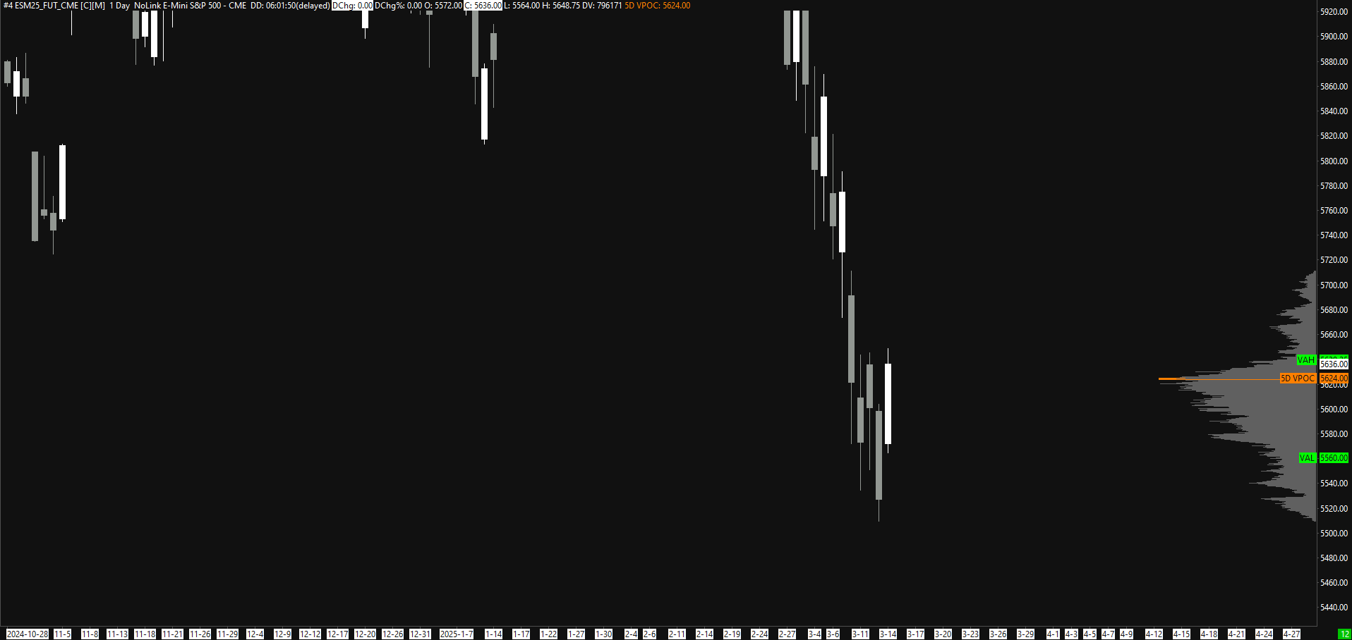 When you use Volume Profiles & POC, VAH, VAL, VWAP Lines you can select Name and Value Labels for POC, VAH, VAL and these labels will be displayed on the right side. When you switch to Volume profiles all labels disappear. Is this intended? https://www.sierrachart.com/image.php?Image=1742148121186.png https://www.sierrachart.com/image.php?Image=1742148224660.png It's also strange when you use the Highlight POC option that a small part of the POC line at the peak is thicker than the rest of the line. When you scale in vertically the line at the peak starts to have the same thickness as the rest of the line. It seems the peak of the line does not scale correctly when you scale out. https://www.sierrachart.com/image.php?Image=1742148419256.png https://www.sierrachart.com/image.php?Image=1742148504779.png You can see this optical "glitch" on many profiles https://www.sierrachart.com/image.php?Image=1742148708905.png |