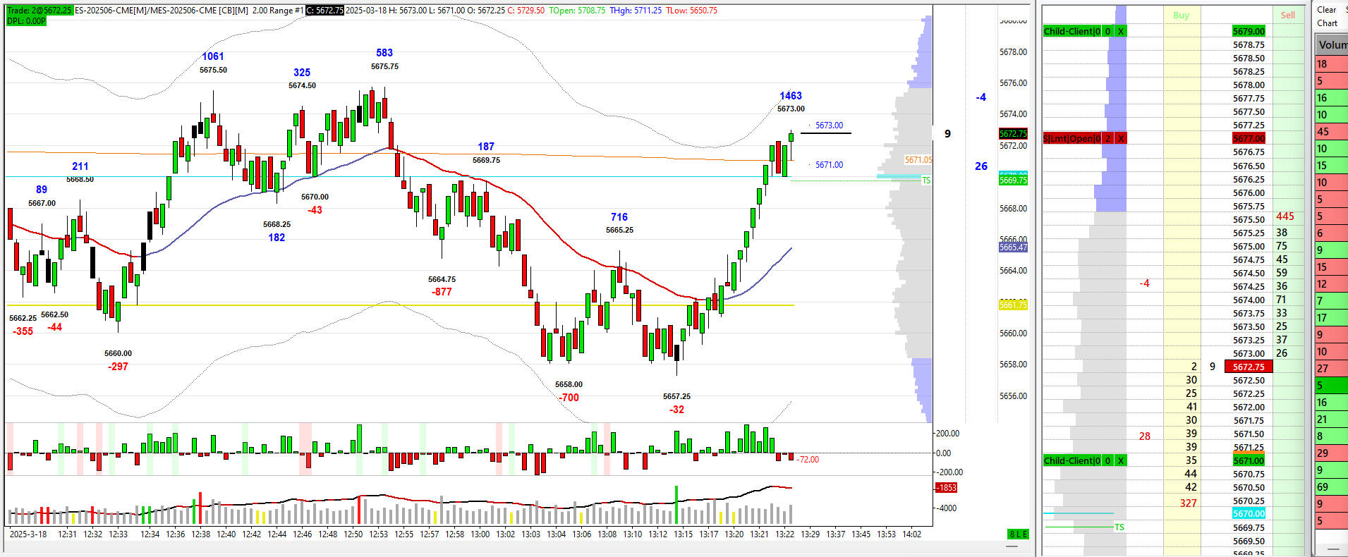 I just changed the chart to MES and left the DOM as shown above. It then does show up on the chart. So. The DOM is showing ES and trading MES. However I really wanted the chart to show ES as well. Any way to do that? |