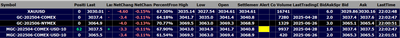 You have your symbol incorrect. You have it in your Quote Board as "GC-202506-NYMEX", but it should be "GC-202506-COMEX" just as you have the other symbols for Gold using COMEX for the exchange.