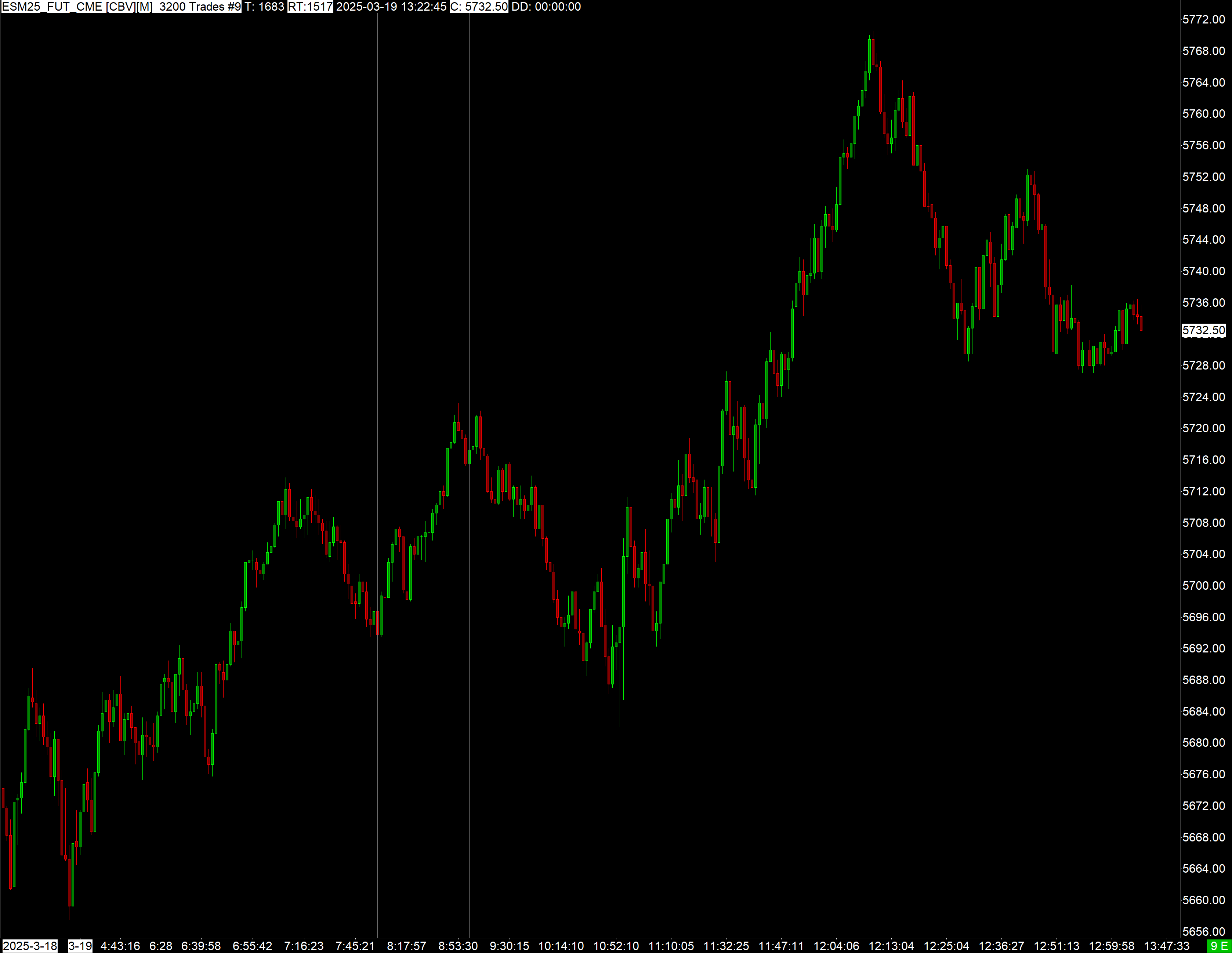 Are you referring to the timestamps on the X-axis? Since the Bar Period Type for these charts is set to “Number of Trades Per Bar,” wouldn’t we expect the timestamps to naturally vary depending on how trades are grouped into candles? If the candles were consistent between both charts, I’d expect the timestamps to align as well. To rule out any setting discrepancies, I did the following: - Duplicated both charts and removed all studies - Manually compared every Chart Setting to ensure they are exactly the same The issue persists despite identical settings. Are there other settings I might be missing? In the new charts, I set the bar size to 3200 trades per bar and added vertical lines at 8 AM PST and 9 AM PST. - Chart #8 contains 11 bars within that time period - Chart #9 contains 24 bars within that time period - Using the Chart Values Window, I confirmed that each bar on both charts shows “# of Trades: 3200”, yet the number of bars differs significantly between the two charts I don’t understand why the number of bars varies so drastically between the charts. Could there be another factor affecting how the data is processed? https://www.sierrachart.com/image.php?Image=1742415750955.png https://www.sierrachart.com/image.php?Image=1742415768889.png |