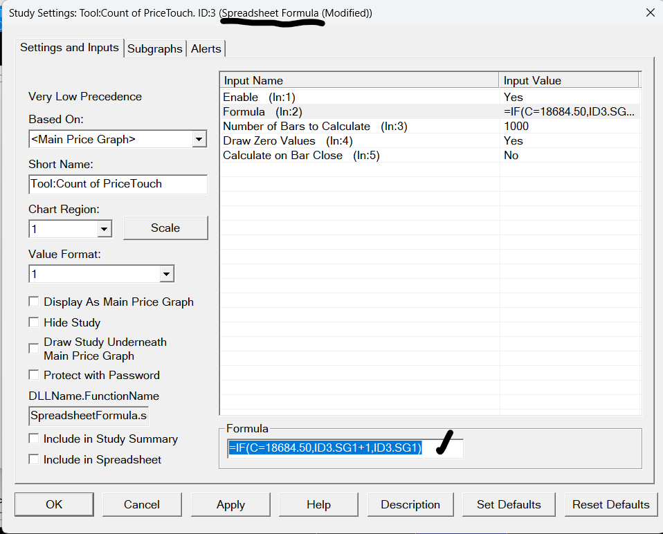 counts the number of times that a specific price is revisited/touched quite simple via spreadsheet formula....subgraph set to value at high