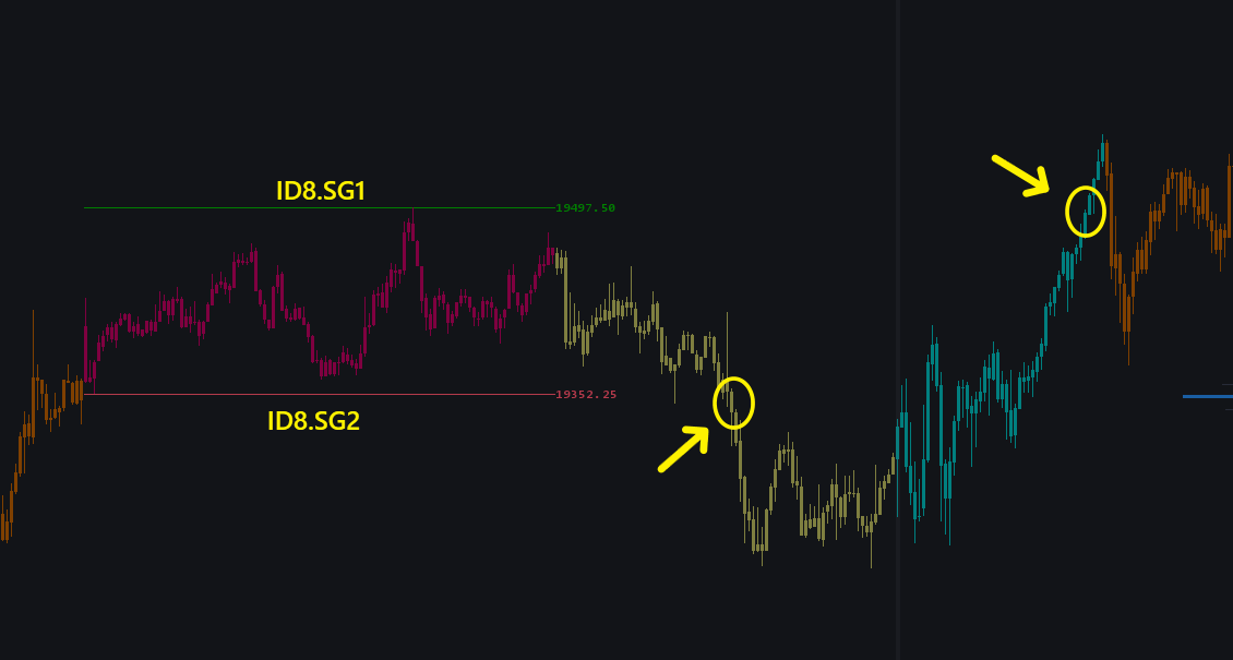 The issue is that your "High/Low for Time Period" only covers that specific time. Since you are looking for a crossover event outside of that time frame, it will not occur, as the values for those lines do not exist beyond the specified time. Or, if you prefer, they do exist, but the values are zero, which is why you see the bars colored at the start and end of the High/Low for Time Period period. You should use the "High/Low for Time Period - Extended" in order to have the line extended out further. Then you can see if a crossover event occurs beyond the given timeframe. Refer to the following: High/Low for Time Period - Extended For the most reliable, advanced, and zero cost futures order routing, use the Teton service: Sierra Chart Teton Futures Order Routing |