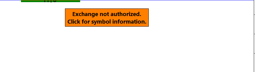 Hi, An Exchange Not Authorized Message is persisting. I've disconnected and reconnected to the datafeed and the message still persists. I'm connected to the datafeed but there is no data. Can someone advise? Thanks |