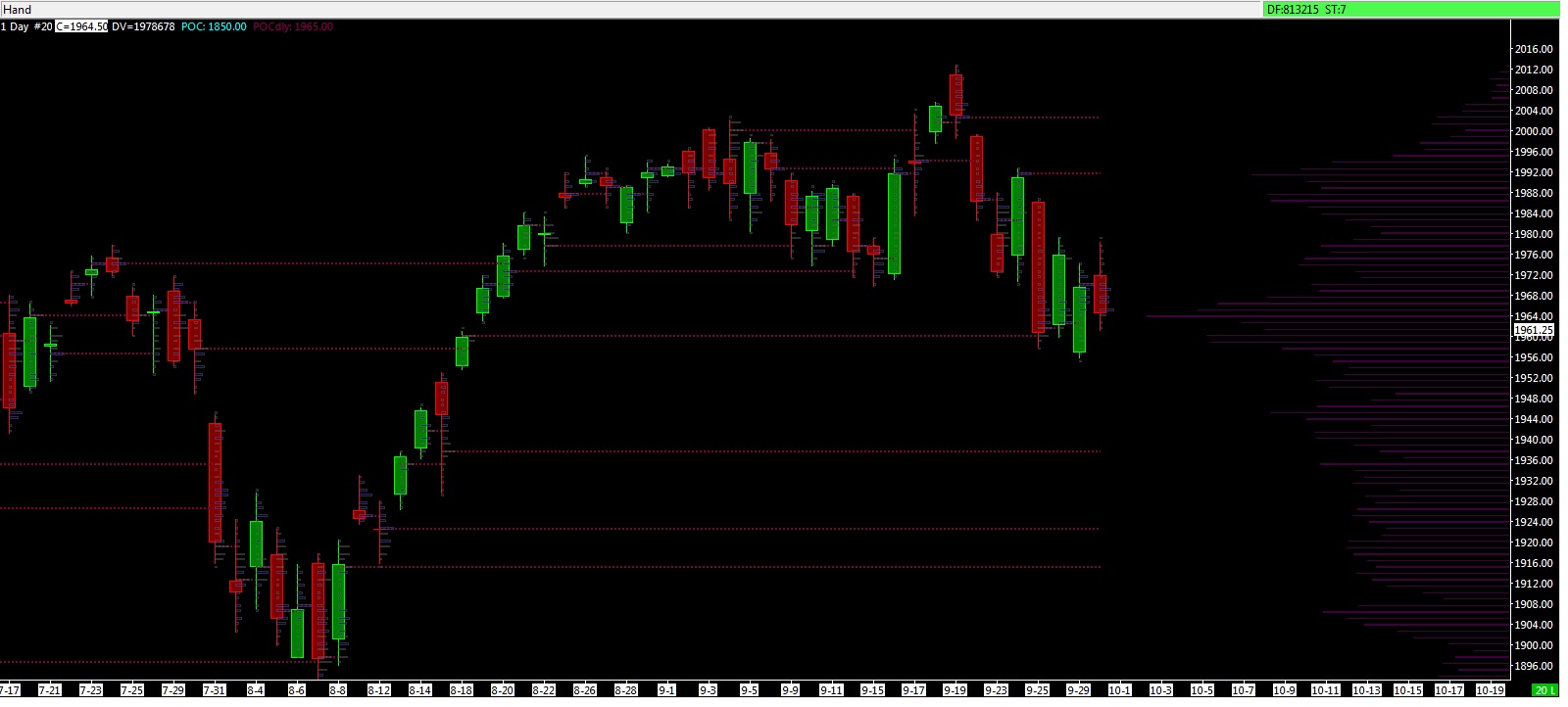 Dear Sierra, Without me doing anything (or at least not aware of having done anything), the volume profile on my key chart lost granularity. More precisely, it seems that it is now plotting volume bars every 5 ticks instead of every 1 tick, as it was and should (because that is how it is setup). To illustrate my problem I am attaching two ES charts. Chart settings for each are identical. I have applied to both the same studies and settings (via a saved template). End result should be identical, but it is not. One is plotting volume profiles with 1 tick per volume bar, the way I have it setup. The other is not. This is the problem chart. I can't just delete it because it is my main chart where I have quite a few dozens lines drawn. Would you know what could have happened? Many thanks, K |
