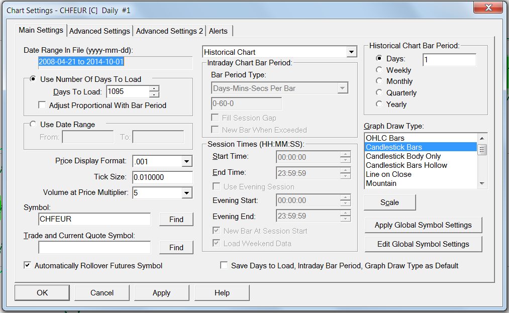 The problem is you are not using the correct symbol format. Since you are using the Sierra Chart Historical Data Service, all of the Forex symbols need to begin with the caret character. Example: ^EURUSD Sierra Chart Support - Engineering Level Your definitive source for support. Other responses are from users. Try to keep your questions brief and to the point. Be aware of support policy: https://www.sierrachart.com/index.php?l=PostingInformation.php#GeneralInformation For the most reliable, advanced, and zero cost futures order routing, *change* to the Teton service: Sierra Chart Teton Futures Order Routing |