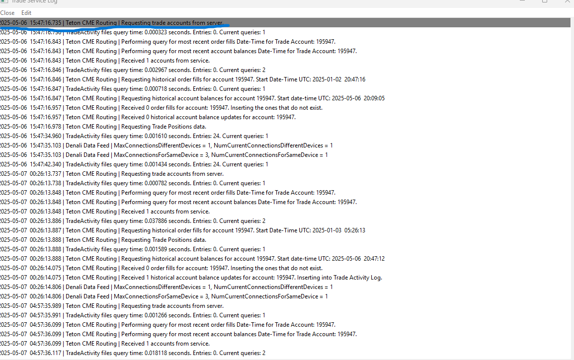 That message is not when you submit an order, but when Sierra Chart connects to the trading server (File >> Connect to Data Feed). That message is of no concern. Sierra Chart Support - Engineering Level Your definitive source for support. Other responses are from users. Try to keep your questions brief and to the point. Be aware of support policy: https://www.sierrachart.com/index.php?l=PostingInformation.php#GeneralInformation For the most reliable, advanced, and zero cost futures order routing, use the Teton service: Sierra Chart Teton Futures Order Routing |