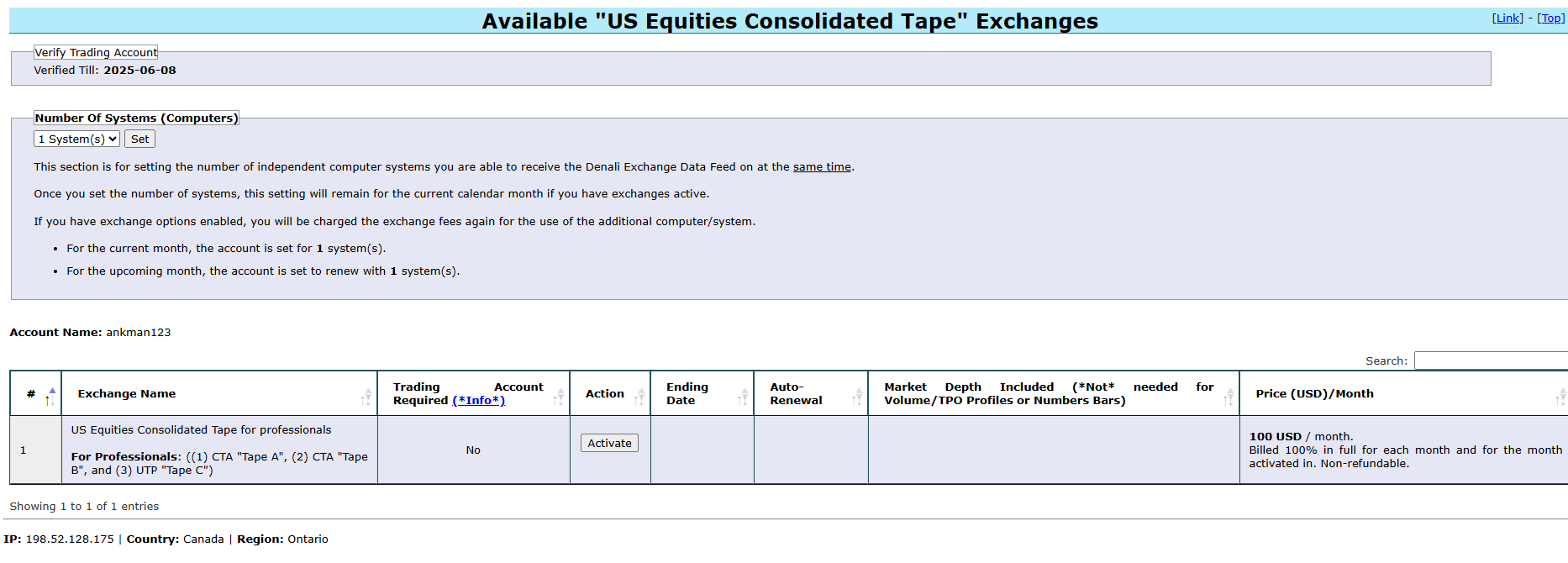 Hello, I have signed the US Equities Exchange Agreements and am approved as a non-professional. However when I try to activate Denali US Equity Consolidated Tape, the option is missing and only Professional is available as an option. How do I activate non-pro? Please see image. Thanks. |