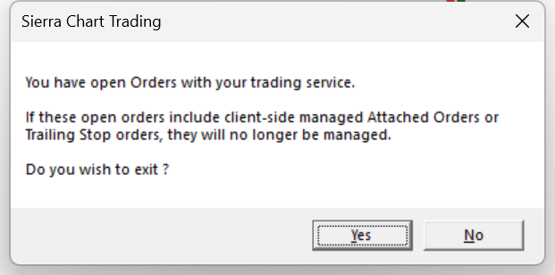 Sierra Chart Trading - You have an open order with your trading service