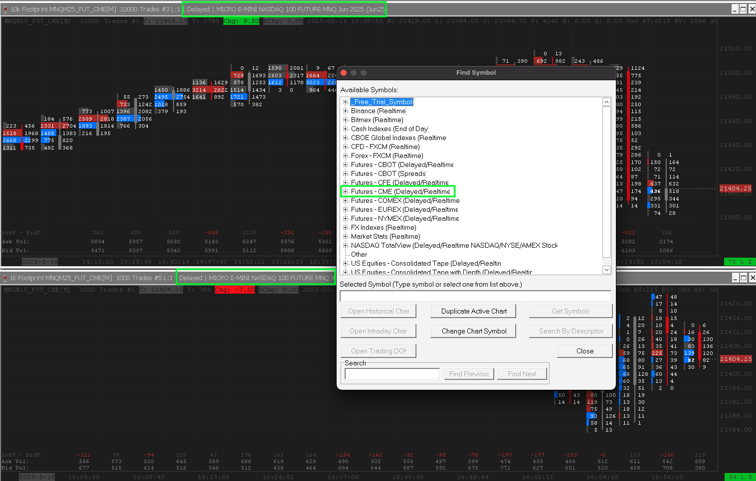 Hi Team, I am using Stage5 trading, while my trading account is connected to my Sierra Chart, I am still getting delayed data of almost 10mins on the Nasdaq and S&P 500. How can I access the live data please. I have attached the screenshot of the current data I am using, which is in File >> Find Symbol >> Futures-CME >> MNQ (Micro E-mini Nasdaq) >> June 2025 >> Open Intraday Chart. Please how can I go about getting the live data? Thank you. |