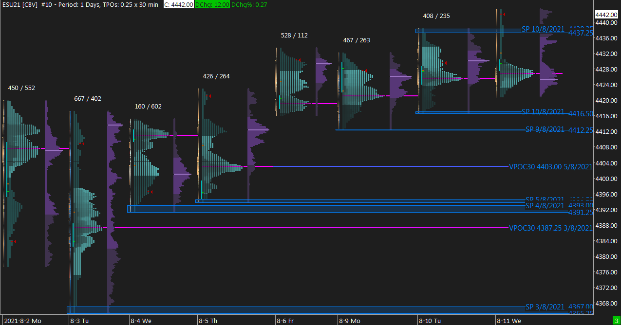Image Uploaded on 2021-08-11 using SC version 2292 Note: Market & Volume Profile with Single Print and Virgin POC indicators |