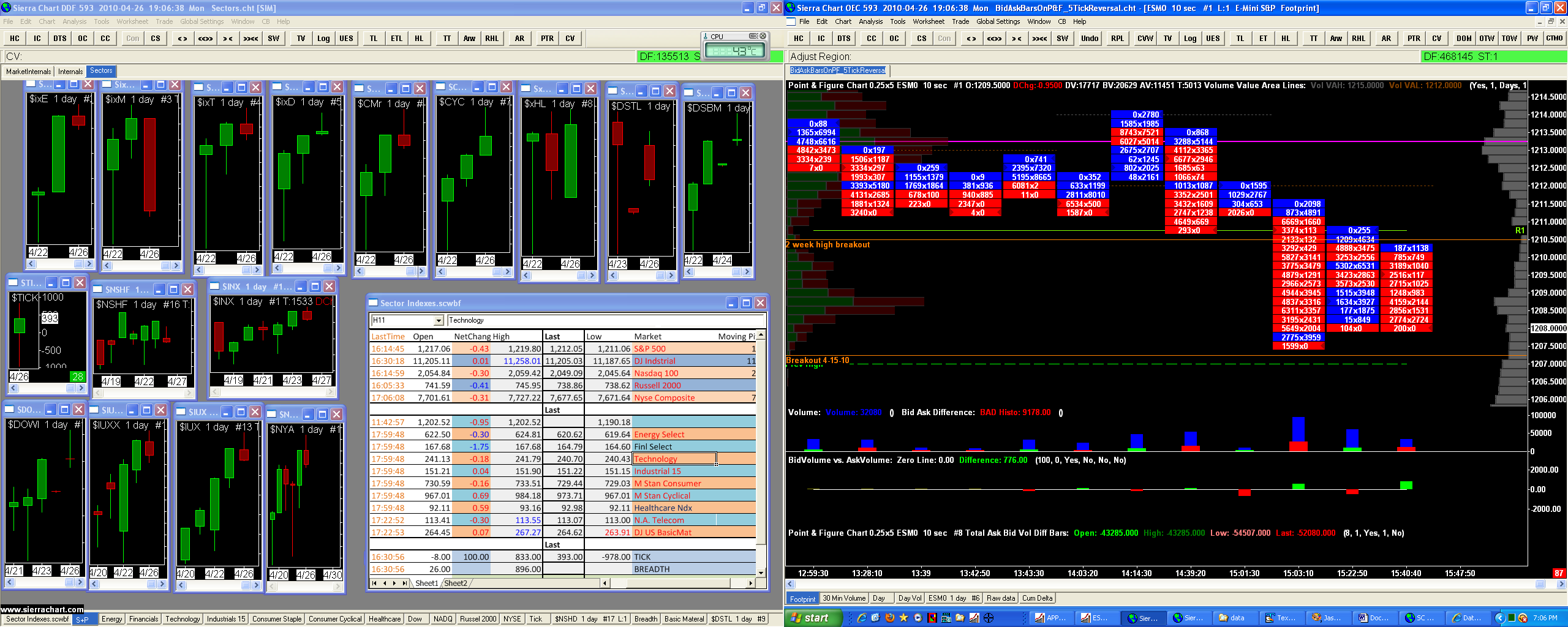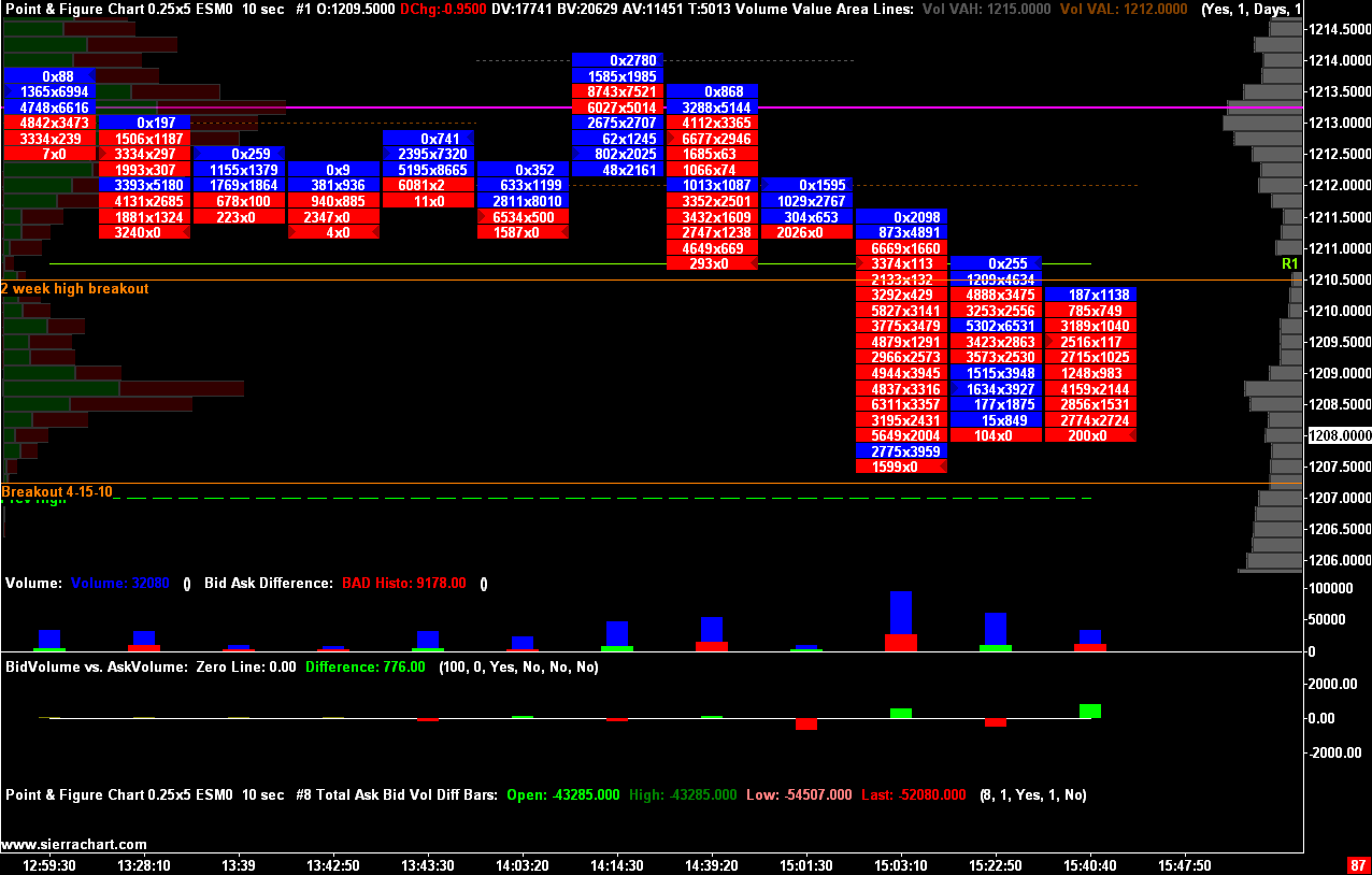 Image Uploaded on 2010-04-26 using SC version 593 by WarriorTrader Note: Point & Figure number bars, volume, bid/ask delta, bid/ask delta with 100 lot filter, two volume by price studies |