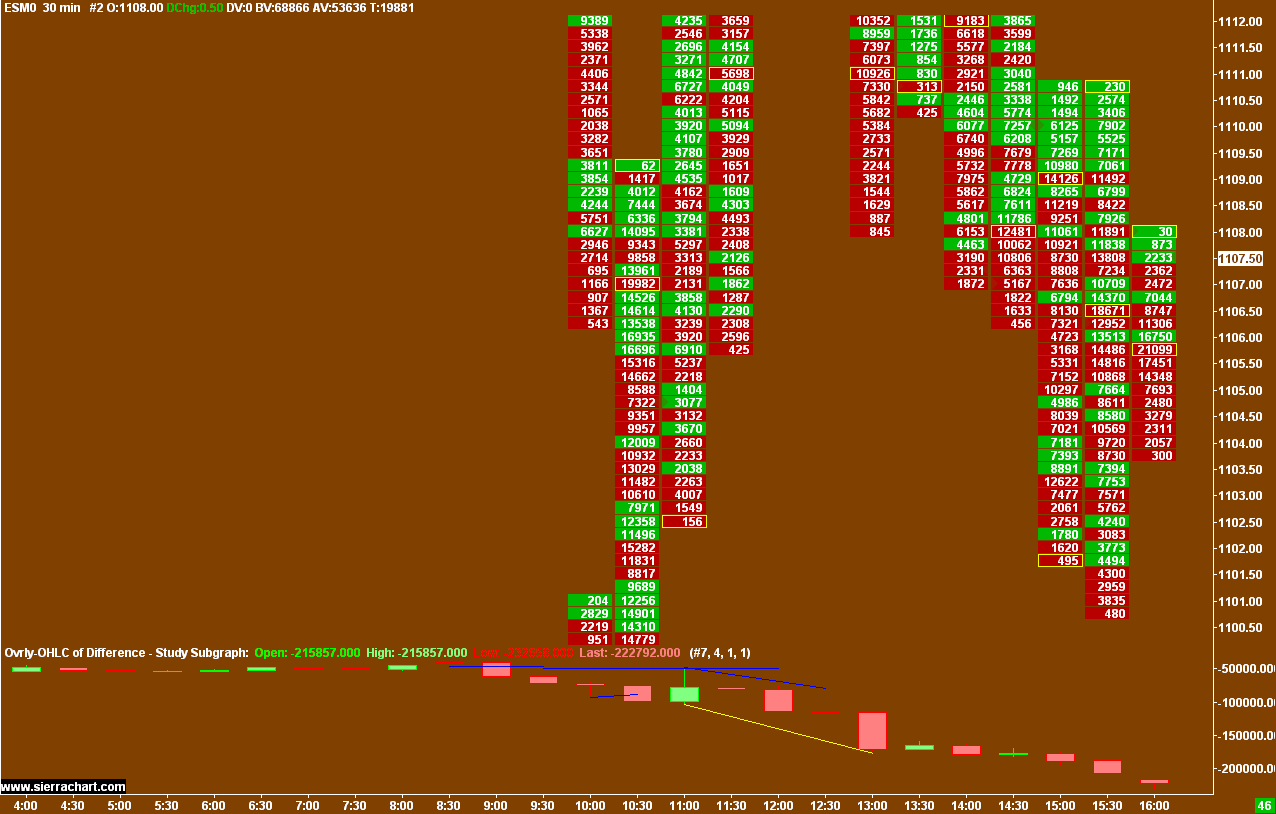 Image Uploaded on 2010-05-08 using SC version 600 by WarriorTrader Note: 30 min number bars with Cumulative Delta candlestick |